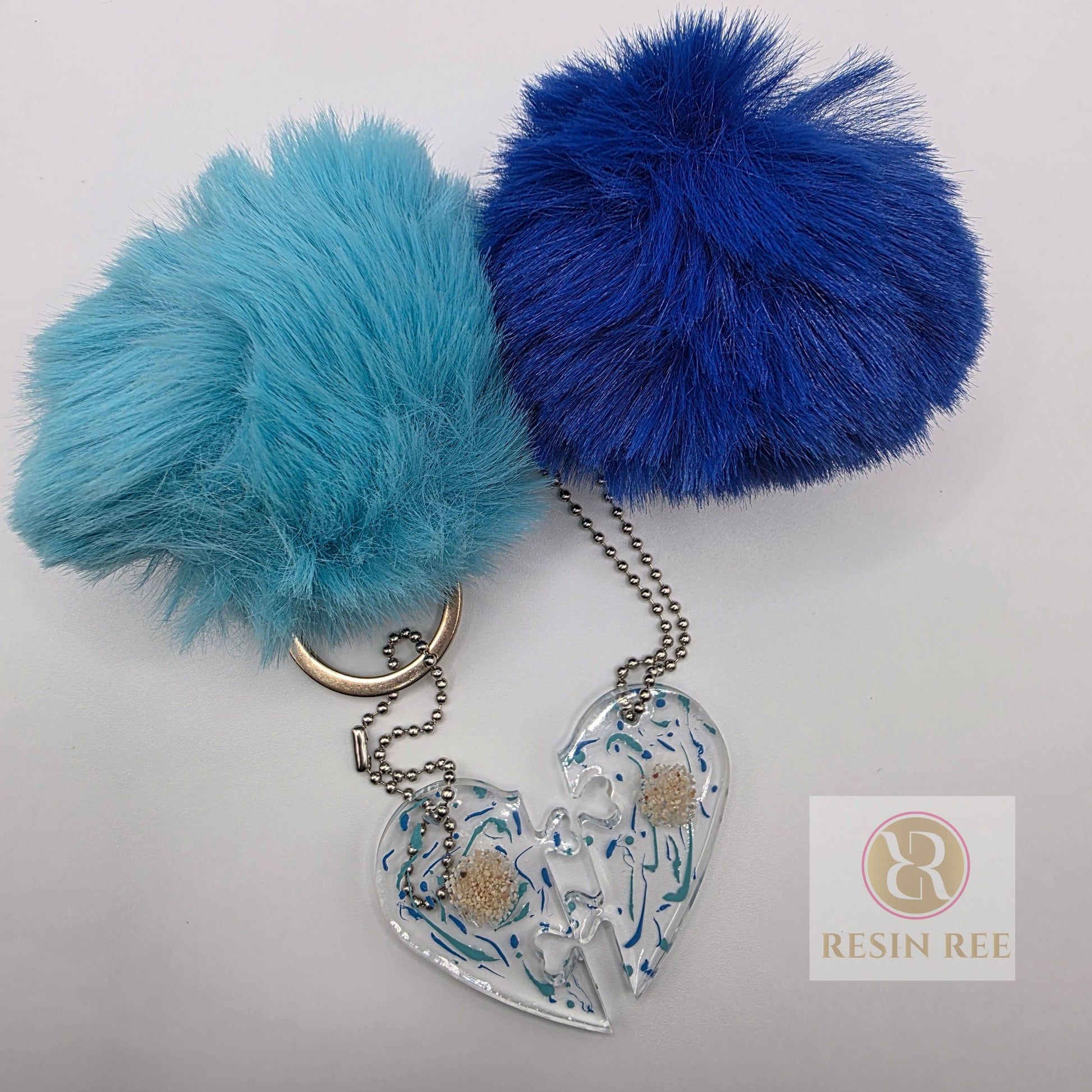 This two piece puzzle heart keychain set captures the calm beauty of the ocean with a meaningful twist. Each half features hand painted blue and teal wave accents flowing through clear resin, symbolizing connection, movement, and harmony.