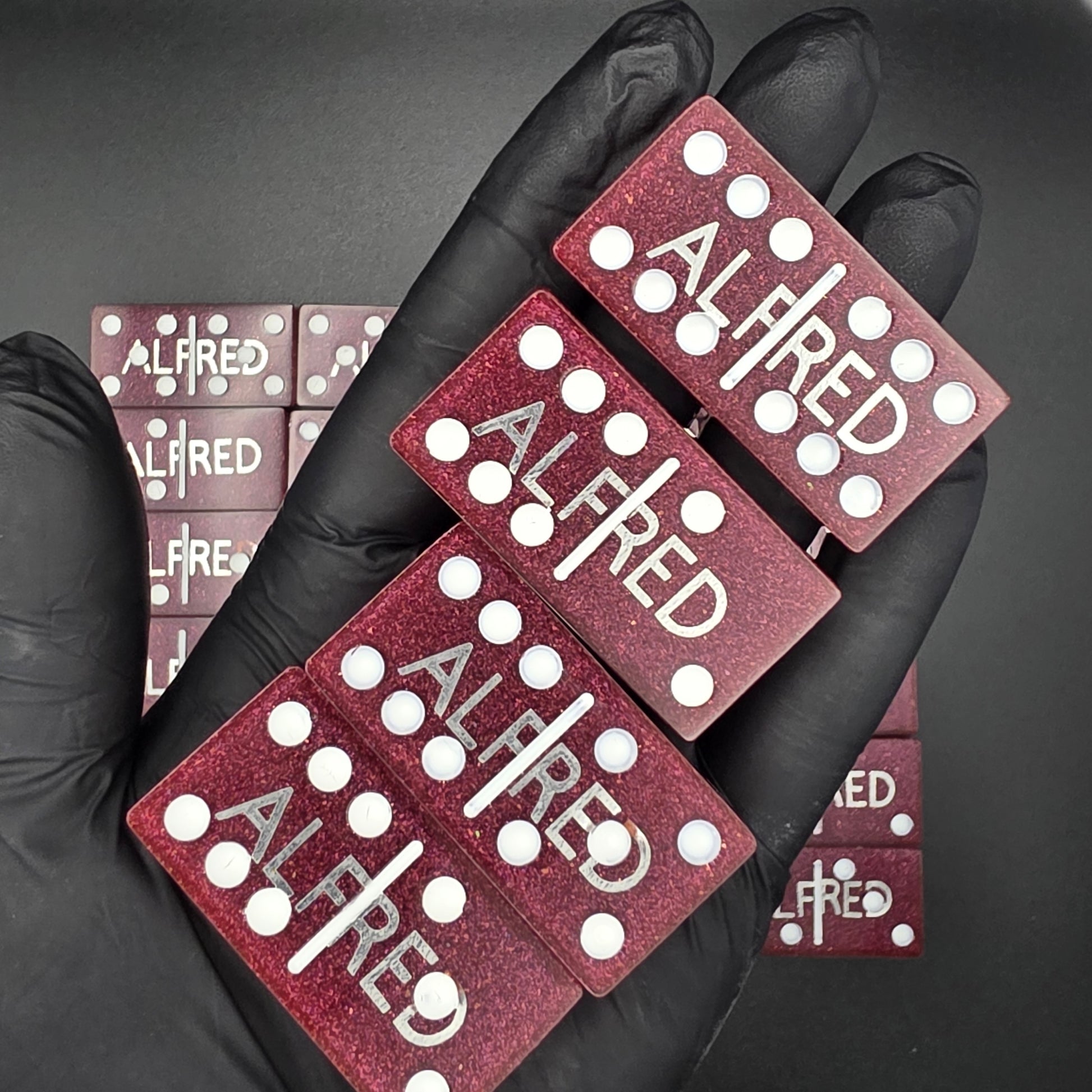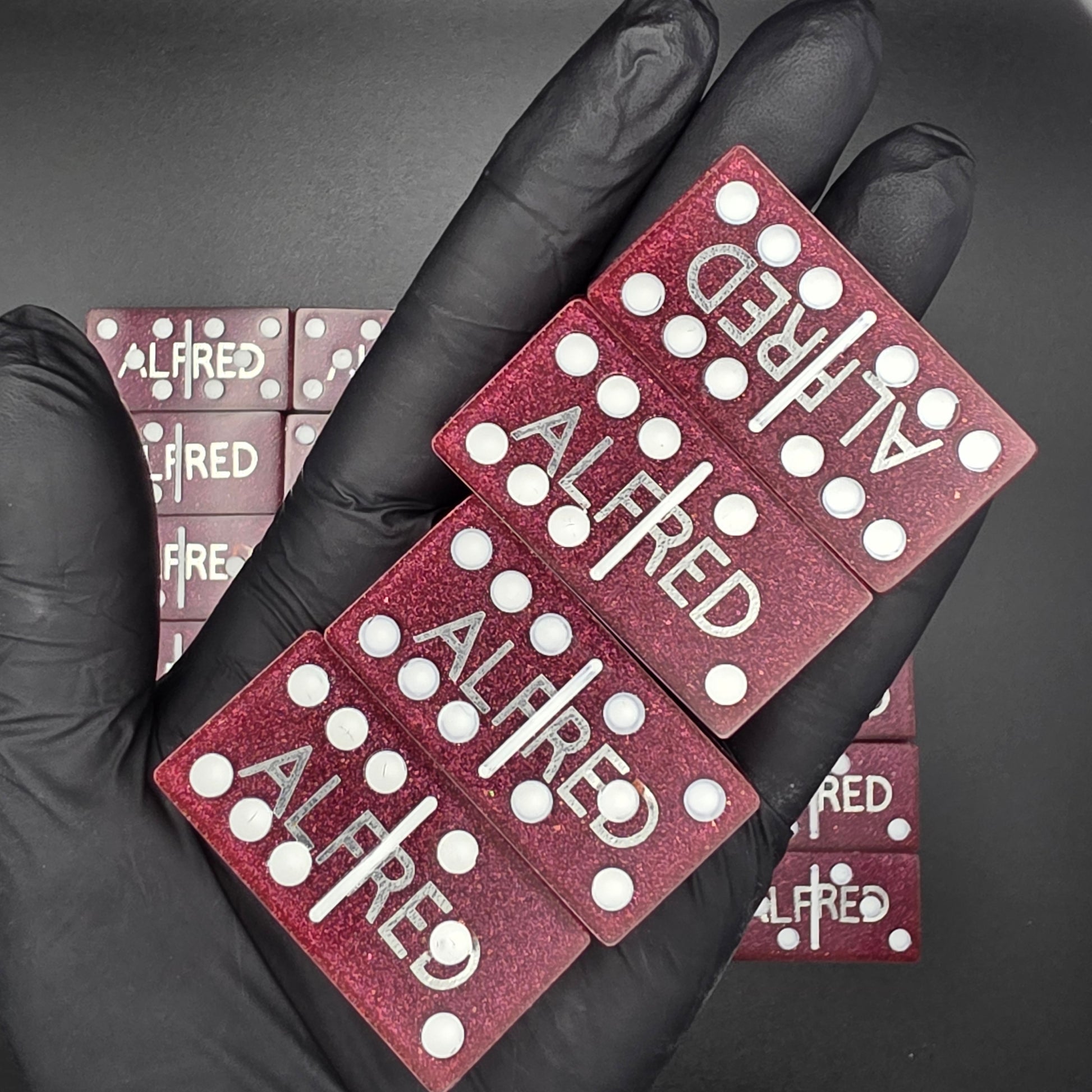 Make every game night personal with our Signature Style Domino Set, fully customized with your name or logo. This handcrafted set features a rich, shimmering finish and bold lettering that makes a statement. Whether it's for yourself or as a memorable gift, these custom dominoes turn classic play into a uniquely personal experience.