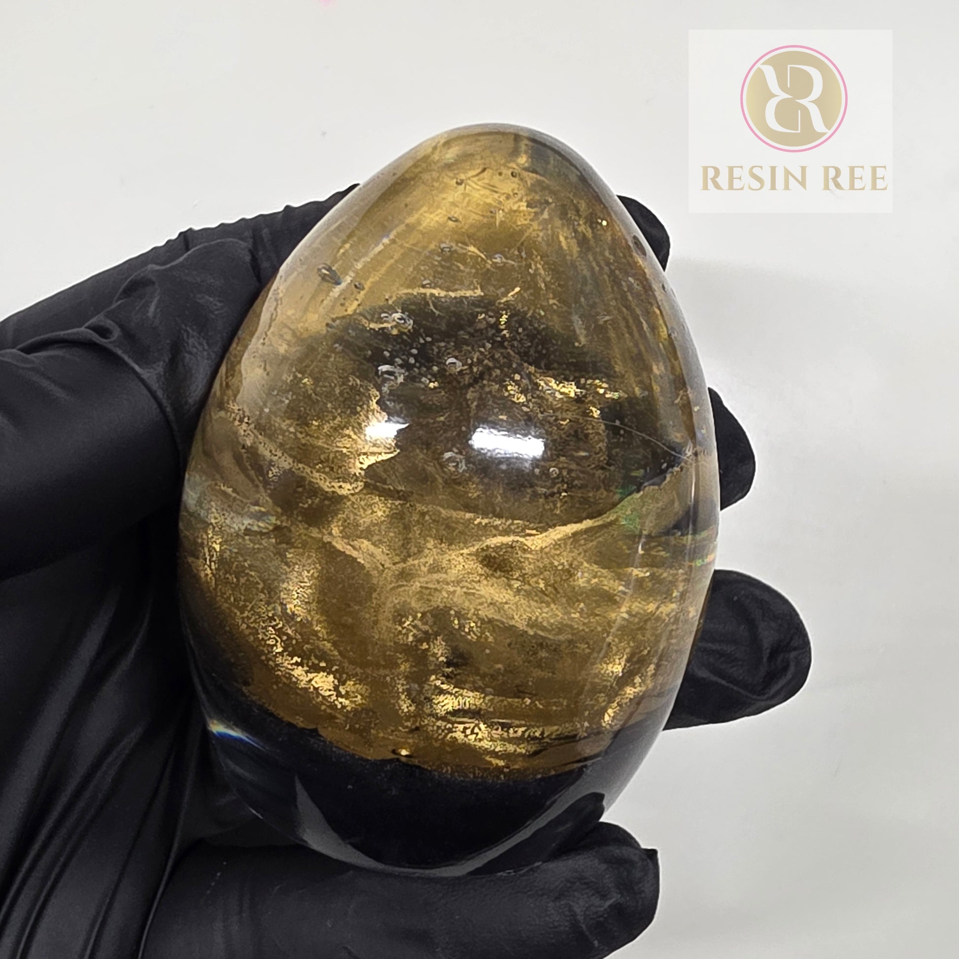 Watch the Video to experience the true beauty of this piece, as it is a testament to quiet elegance. This handcrafted Resin Ree creation captures swirls of gold suspended in crystal-clear resin, flowing into a deep black base for a striking contrast. Each piece reflects light beautifully, making it a unique accent for any desk, shelf, or coffee table. A modern touch of art and luxury in one smooth form.
