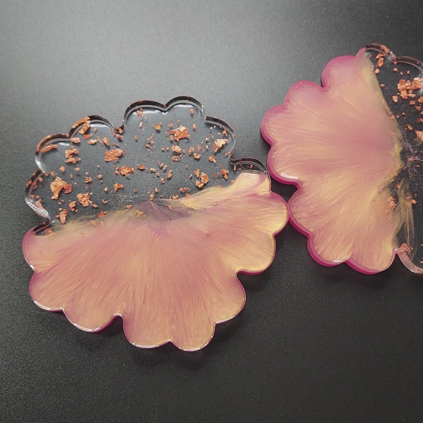 A fiery fusion of rose gold, copper flakes, and petal-like curves, these handcrafted Molten Bloom resin coasters are designed to spark conversation and protect your surfaces in style. With a half-clear, half-metallic swirl finish, each piece is one-of-a-kind—just like your space.