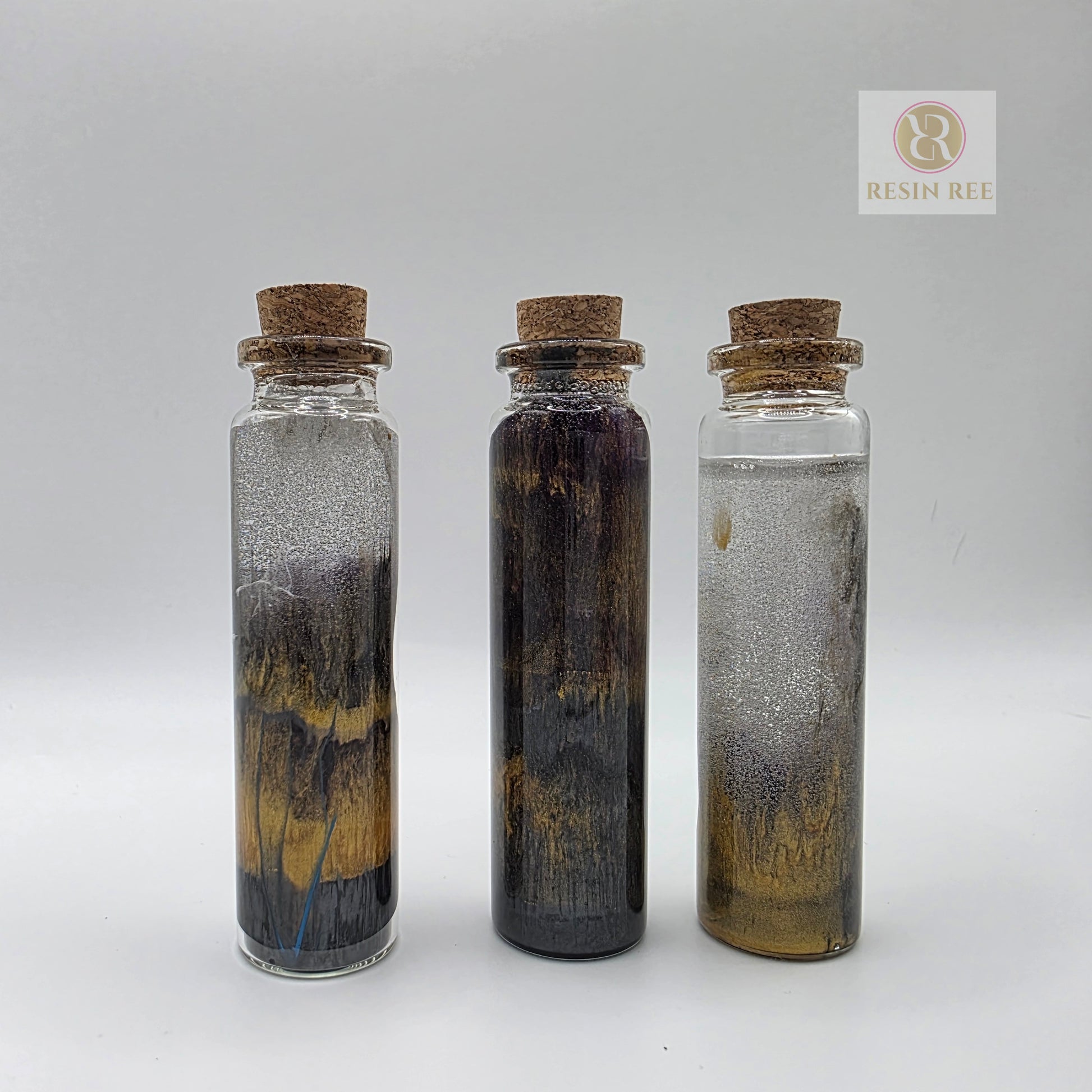 Bring a touch of magic into any space with these Mystic Alchemist Bottles. Each bottle is filled with handcrafted resin infused with shimmering metallic pigments that shift, swirl, and drift like an enchanted spell suspended in glass.